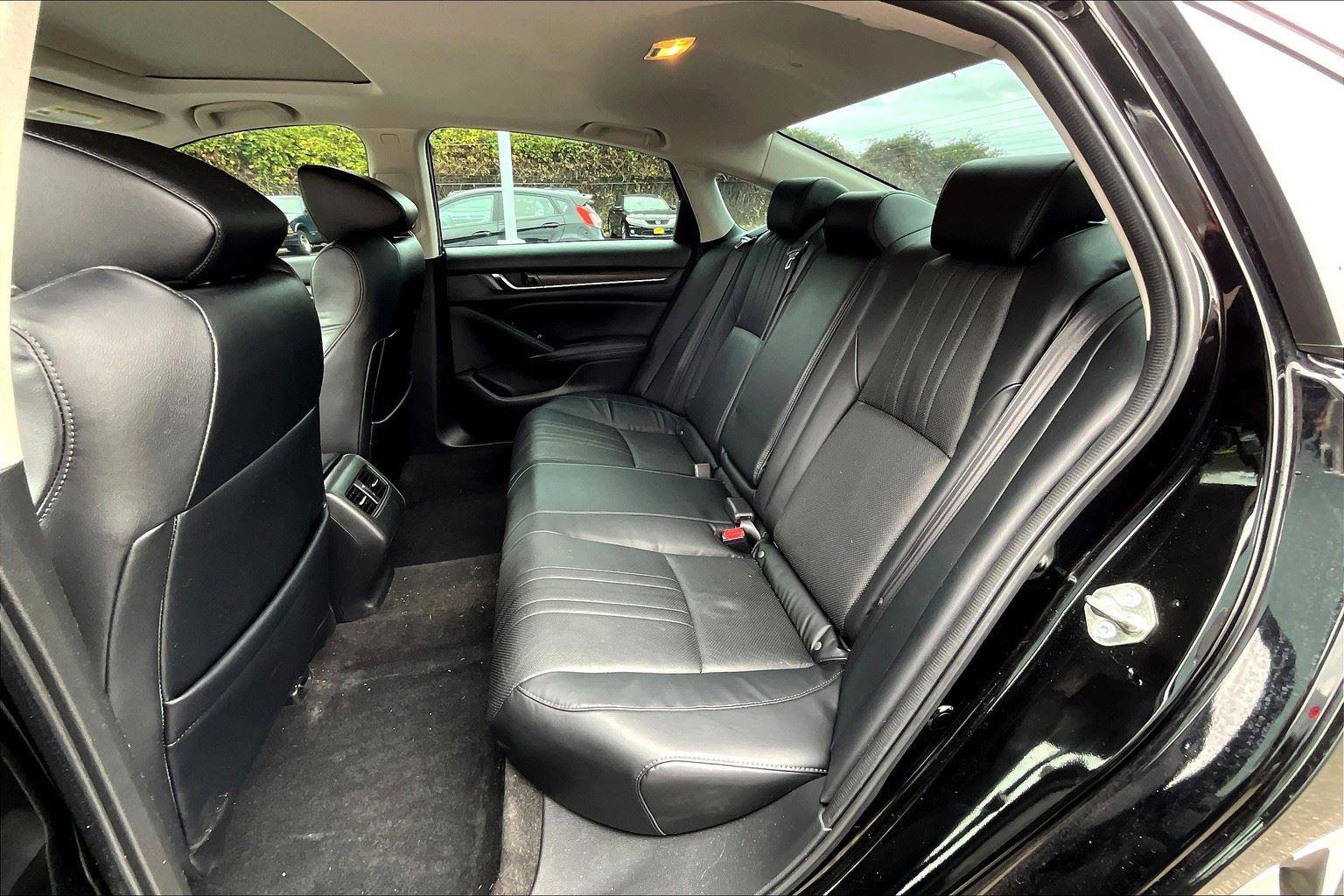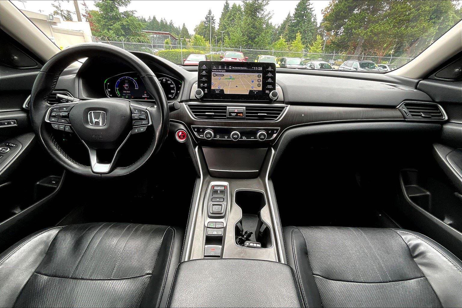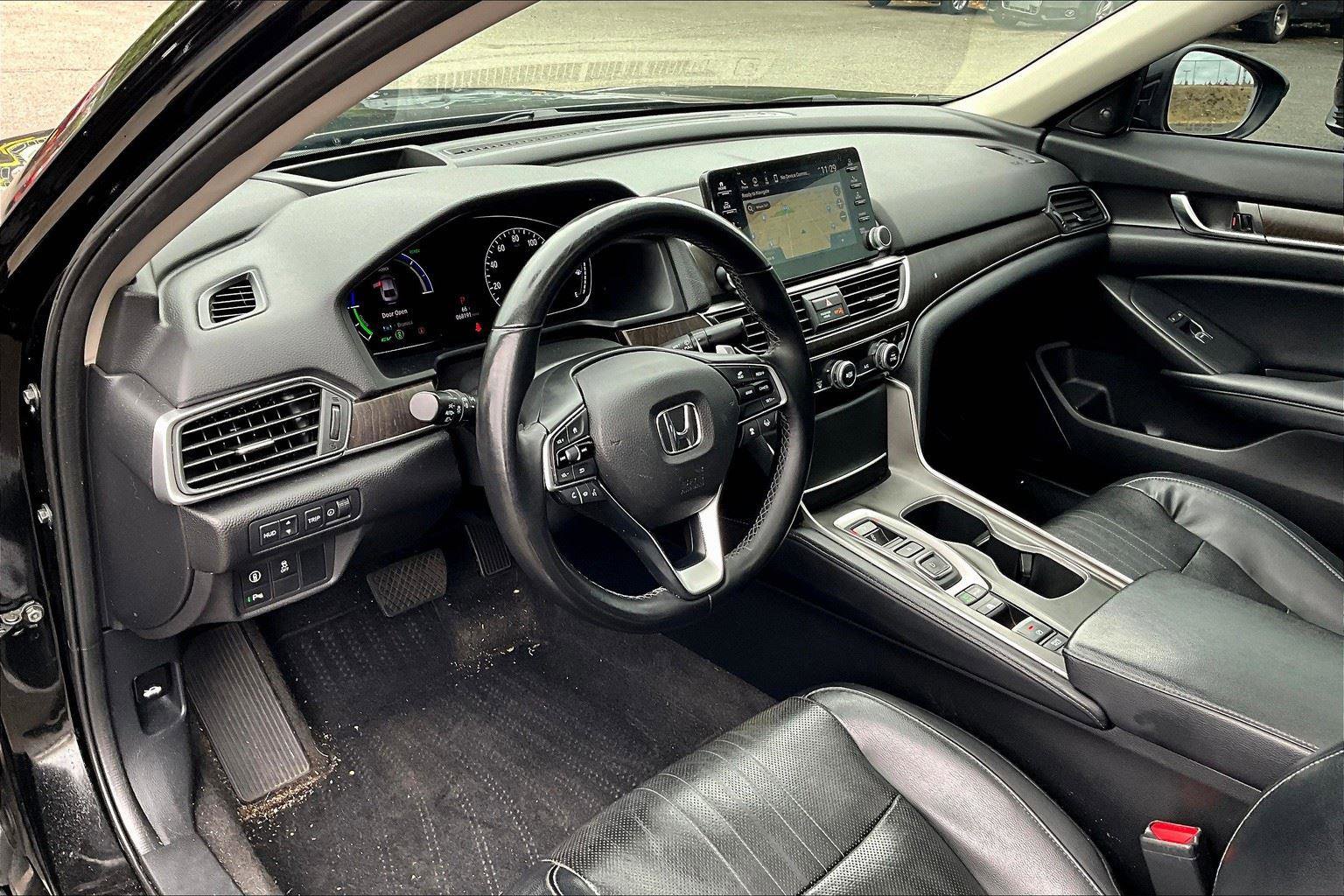 2018 Honda Accord Hybrid Touring VIN: 1HGCV3F98JA005692 Exterior Color: Crystal Black Pearl Interior Color: Black Miles: 68075 Factory Installed Packages / Features: Comfort Ventilated seats offer warm weather comfort by cooling areas of the occupant’s body not exposed to the air conditioning system. Convenience This ”intelligent” cruise control system uses laser or radar to maintain a preset following distance behind another vehicle, automatically braking (to a complete stop if needed) or accelerating as required. Cruise control maintains a preset vehicle speed; automatically increasing or decreasing throttle to maintain that speed. Safety and Security The vehicle is equipped with a system that senses, and then prepares, the vehicle and/or occupants, for an impending forward collision. The vehicle constantly monitors the roadway in front of the vehicle and identifies and tracks pedestrians on an interior display. If the system determines a likely impact, it will automatically take preventative steps to avoid hitting the pedestrian. The vehicle constantly monitors the roadway in front of the vehicle and identifies and tracks pedestrians on an interior display. If the system determines a likely impact, it will automatically take preventative steps to avoid hitting the pedestrian. The vehicle is equipped with a camera that displays an image of the area behind the vehicle on an interior display. An active lane departure system alerts the driver of unintended movement of the vehicle out of a designated traffic lane and automatically maintains the vehicle’s position within that lane. A head-up display projects gauge (speed, RPM, etc.) information onto the inside of the windshield just below the driver’s line of sight. Brake assist senses panic braking from the speed of the brake pedal’s travel and applies all available power brake boost. Technology and Telematics Without the need for a manufacturer specific app to be installed on the smart device, the vehicle infotainment system can access and control functions of a smart device physically plugged-into the vehicle. Mobile devices can wirelessly connect to the internet through the vehicle’s private mobile network.