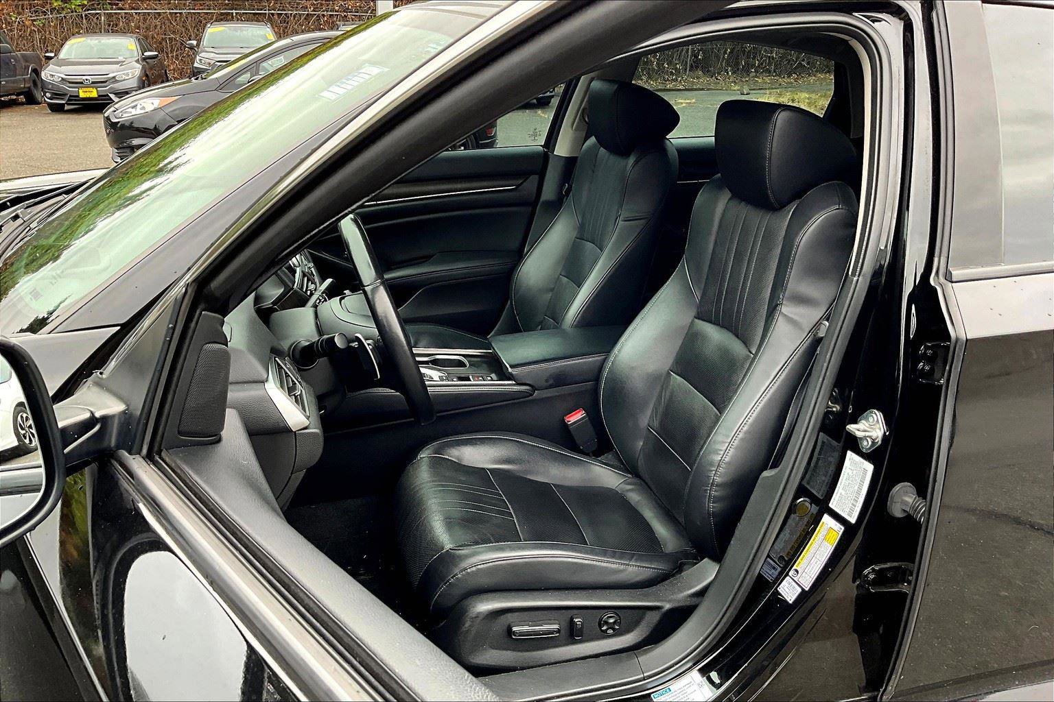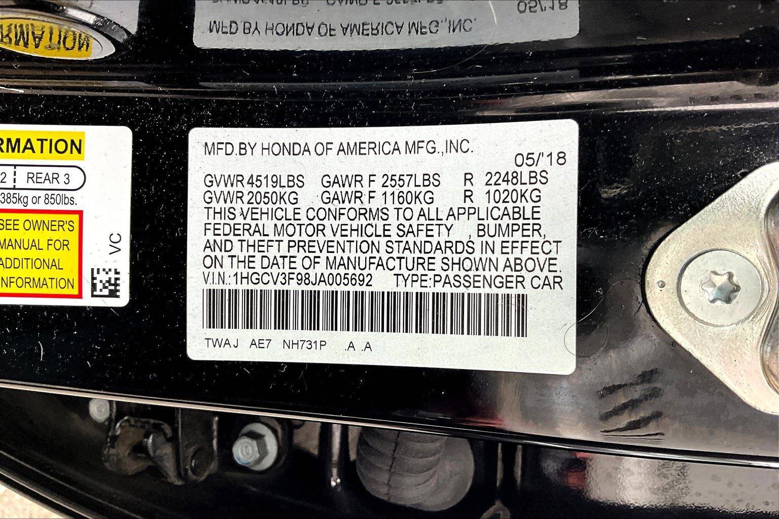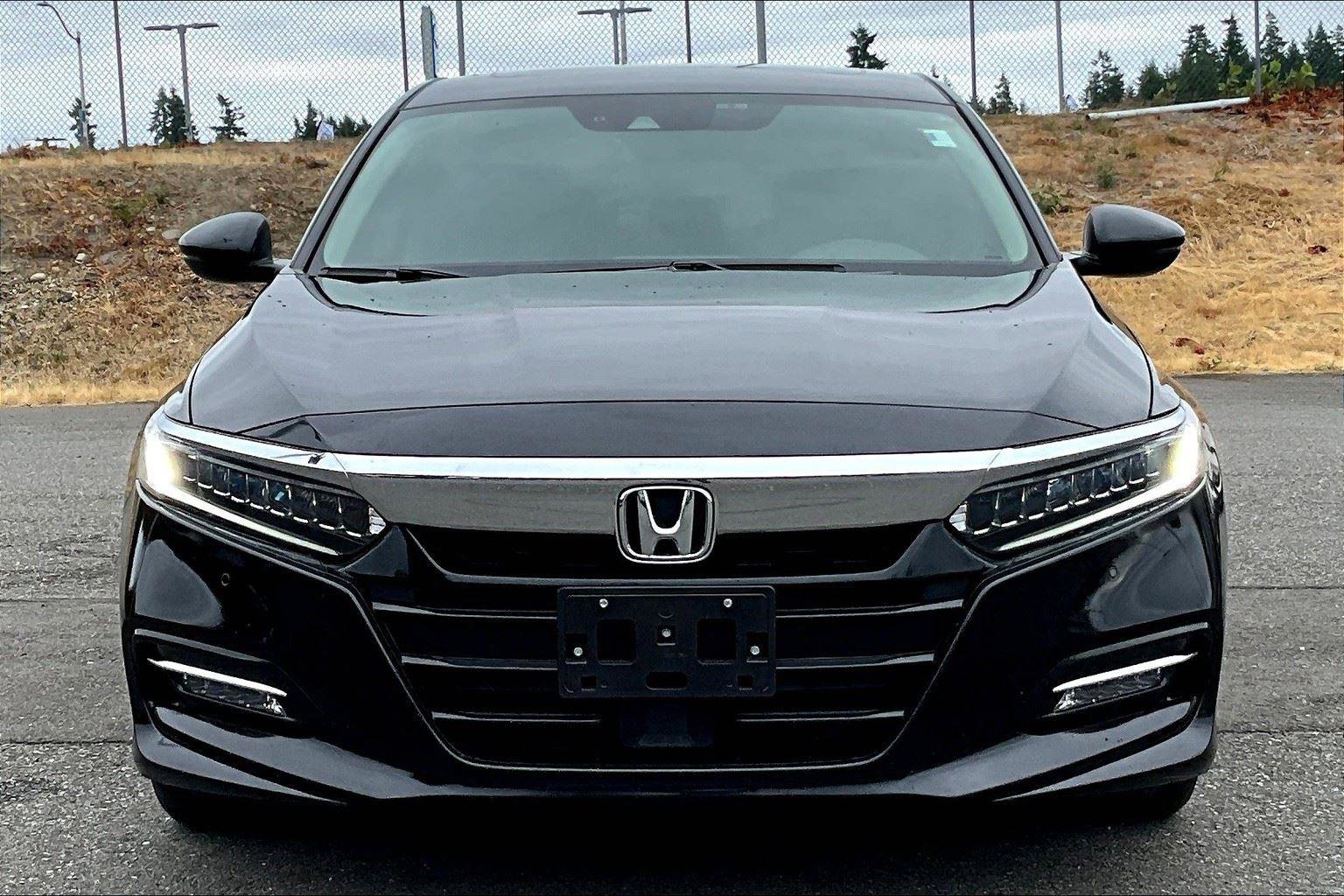 2018 Honda Accord Hybrid Touring VIN: 1HGCV3F98JA005692 Exterior Color: Crystal Black Pearl Interior Color: Black Miles: 68075 Factory Installed Packages / Features: Comfort Ventilated seats offer warm weather comfort by cooling areas of the occupant’s body not exposed to the air conditioning system. Convenience This ”intelligent” cruise control system uses laser or radar to maintain a preset following distance behind another vehicle, automatically braking (to a complete stop if needed) or accelerating as required. Cruise control maintains a preset vehicle speed; automatically increasing or decreasing throttle to maintain that speed. Safety and Security The vehicle is equipped with a system that senses, and then prepares, the vehicle and/or occupants, for an impending forward collision. The vehicle constantly monitors the roadway in front of the vehicle and identifies and tracks pedestrians on an interior display. If the system determines a likely impact, it will automatically take preventative steps to avoid hitting the pedestrian. The vehicle constantly monitors the roadway in front of the vehicle and identifies and tracks pedestrians on an interior display. If the system determines a likely impact, it will automatically take preventative steps to avoid hitting the pedestrian. The vehicle is equipped with a camera that displays an image of the area behind the vehicle on an interior display. An active lane departure system alerts the driver of unintended movement of the vehicle out of a designated traffic lane and automatically maintains the vehicle’s position within that lane. A head-up display projects gauge (speed, RPM, etc.) information onto the inside of the windshield just below the driver’s line of sight. Brake assist senses panic braking from the speed of the brake pedal’s travel and applies all available power brake boost. Technology and Telematics Without the need for a manufacturer specific app to be installed on the smart device, the vehicle infotainment system can access and control functions of a smart device physically plugged-into the vehicle. Mobile devices can wirelessly connect to the internet through the vehicle’s private mobile network.